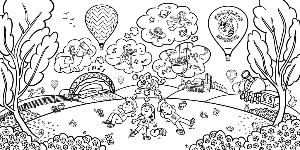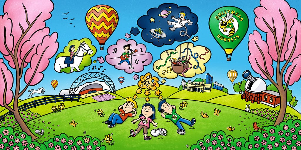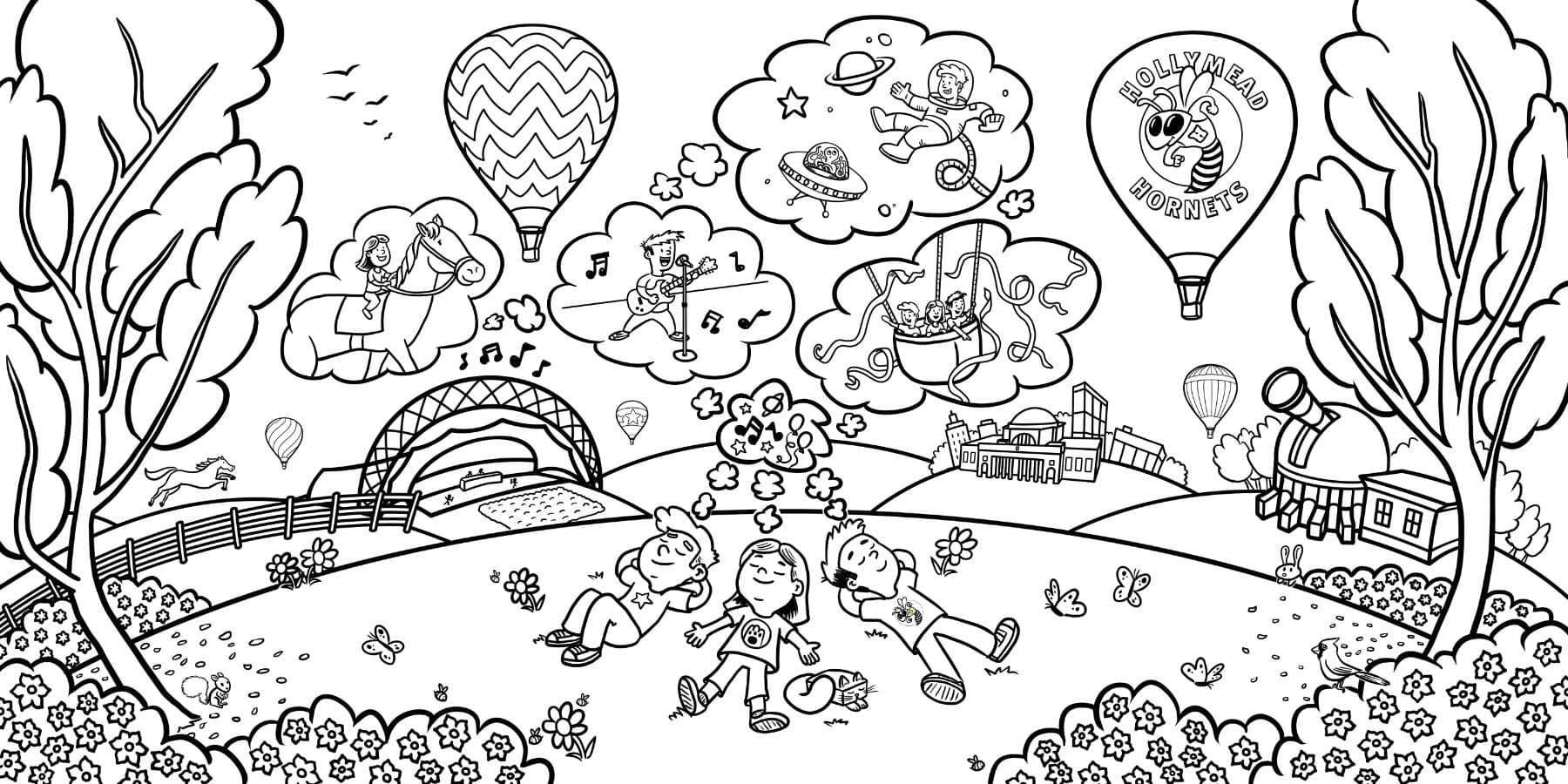 My role was to combine three winning ideas submitted by students into one design. The solution I came up with was to include likenesses of the three kids daydreaming about the things they each had drawn. I think my favorite detail was including the cat of one of the kids, named Tofu, and making it shaped like a block of tofu!