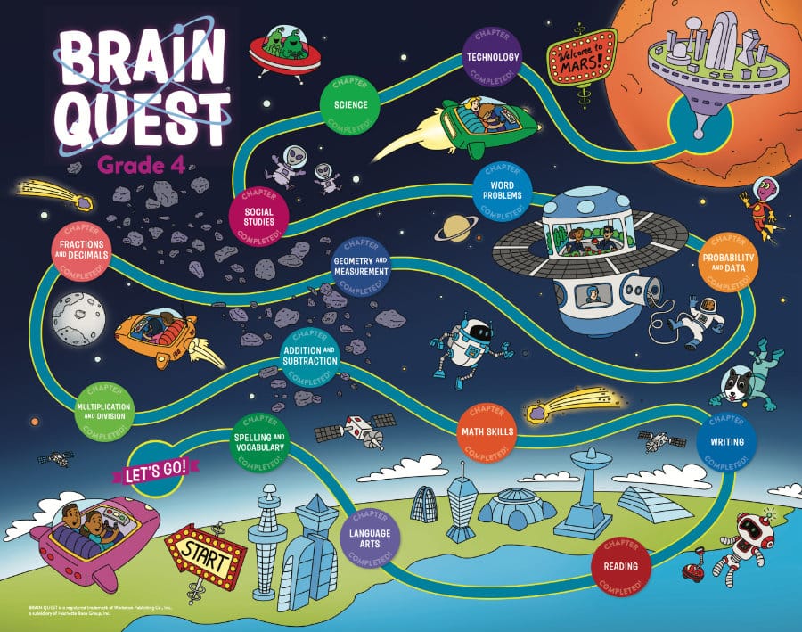 This was truly a dream project for me. The magnitude of this project didn’t fully sink in, however, until I paid a visit to Barnes and Noble and saw a display of all the workbooks and deck cards. Seeing a whole shelf display filled with Brain Quest products with my artwork in all of them was an amazing moment.