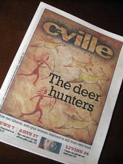 Happy New Year! 2013 is off to an auspicious start for me already with my first cover for C-ville hitting the stands today. It’s my first cover for anything available locally like this, and it’s really cool to drive around town and see my artwork everywhere! This is a slight departure from my usual work, but the art director wanted to avoid using any gun imagery after the recent shootings in New Haven. When we met, he had already worked out the idea of a cave painting and showing the women from the article with bows and arrows.