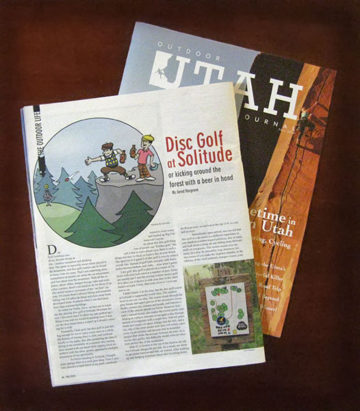 Latest work for Utah Outdoor Adventure journal for an article on disc golf. I couldn’t resist putting in the cliche golf clothes, which I think also help people unfamiliar with disc golf understand what’s going on in the scene; specifically that it’s not frisbee. Just for fun, I’ve included a couple of my thumbnail sketches below.