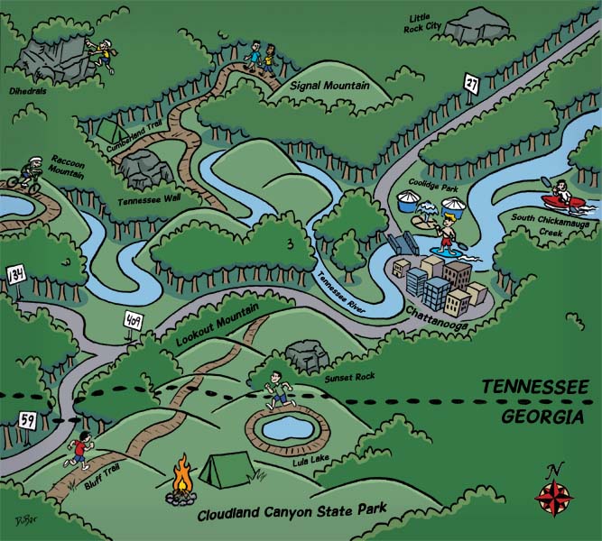 Here are the latest map illustrations for Blue Ridge Outdoors Magazine. This month’s issue features Black Mountain, North Carolina, while last month’s issue featured Chattanooga, Tennessee.