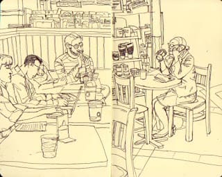 I don’t normally show people the sketches I make of them, but I’m glad I did it this time. My nieces always like to tease me for being a “creepy sketchbook stalker,” but the truth is, most people are really flattered (and in this case, deeply moved) that someone would find them interesting enough to create a piece of art about. I know its not the Mona Lisa or anything, but, hey, it made that guy’s day.