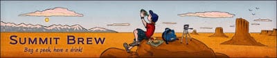 I got to illustrate the header image for a brand new website called SummitBrew.com, started up by outdoor journalist (and beer-drinker) Jared Hargrave. The premise of the site is for contributors to climb a peak, and once there drink an exotic beer, then later write a review of both.